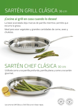Las sartenes Grill Clásica y Chef Clásica no incluyen tapas.
