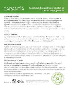 inspección, Rena Ware determina que existe un defecto cubierto por la garantía, Rena Ware asumirá el costo ción, Rena Ware determina que existe un defecto cubierto por la garantía, Rena Ware asumirá el costo