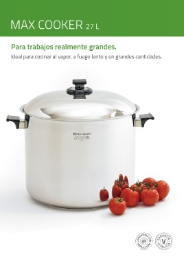 MAX COOKER 27 L Para trabajos realmente grandes. Ideal para cocinar al vapor, a fuego lento y en grandes cantidades. V