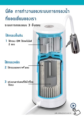 นี่คือ�การทำ�งานของระบบการกรองน้ำ���������������� ที่ยอดเยี่ยมของเรา ระบบการกรองแบบ�3�ขั้นตอน ไส้กรองขั้นต้น 1�ไส้กรอง�EM�ใช้เทคโนโลยี� ������2�แบบ ไส้กรองหลัก 2�ไส้กรองแอคควา✓เอชด 3�แท่งแกนคาร์บอนที่ให้น้ำ�ที่ไหล� ������ได้แรง ดูวีดีโอ�เพื่อเรียนรู้ว่ามันทำงานอย่างไร