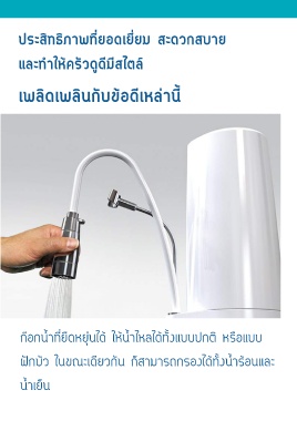ประสิทธิภาพที่ยอดเยี่ยม�สะดวกสบาย��������������������� และทำ�ให้ครัวดูดีมีสไตล์ เพลิดเพลินกับข้อดีเหล่านี้ ก๊อกน้ำ�ที่ยืดหยุ่นได้�ให้น้ำ�ไหลได้ทั้งแบบปกติ�หรือแบบ ฝักบัว�ในขณะเดียวกัน�ก็สามารถกรองได้ทั้งน้ำ�ร้อนและ น้ำ�เย็น