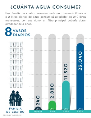 o 2 litros diarios de agua consumirá alrededor de 240 litros
