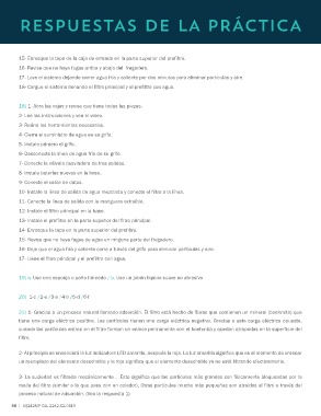 21) 1- Gracias a un proceso natural llamado adsorción. El filtro está hecho de fibras que contienen un mineral (boehmita) que
