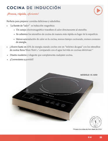 • Menos acumulación de calor en la cocina, menos tiempo cocinando, menos consumo