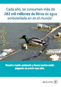 Cada año, se consumen más de 282 mil millones de litros de agua embotellada en en el mundo . 1 2 Nuestro medio ambiente y fauna marina están pagando un precio muy alto. VEA EL VIDEO
