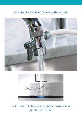 Se conecta fácilmente a su grifo actual. Las luces LED le avisan cuándo reemplazar el filtro principal.