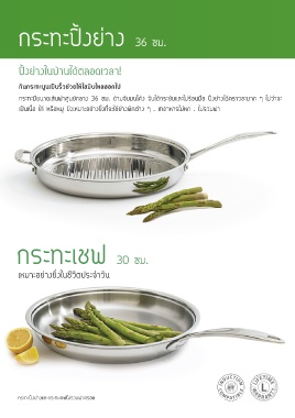 กระทะมีขนาดเส้นผ่าศูนย์กลาง 36 ซม. ด้ามจับมนโค้ง จับได้กระชับและไม่ร้อนมือ ปิ้งย่างได้คราวละมาก ๆ ไม่ว่าจะ
