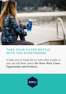 TAKE YOUR FILTER BOTTLE WITH YOU EVERYWHERE It helps you to break the ice with other people so you can tell them about the Rena Ware Cause, Opportunity and Products.