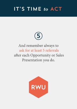 IT’S TIME to ACT And remember always to ask for at least 5 referrals a er each Opportunity or Sales Presentation you do.