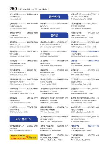 에스앤엠봉투플라스틱 ..... (323)589-5746 가주애니타임플러밍 ......... (562)713-0676 대동플러밍 ....................... (562)552-1762