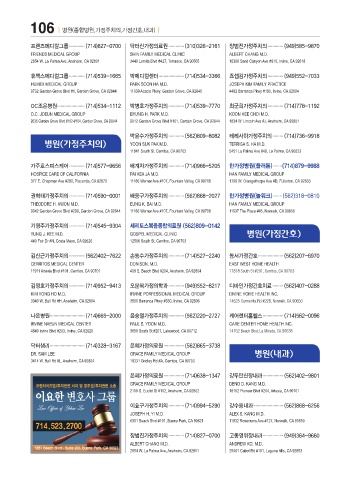 은혜가정의료원 ................. (714)638-1347 강두만신장내과 ................. (562)402-9801