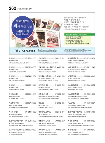 마리미술학원 ..................... (949)651-1944 미주시사어학원 ................. (714)899-2929 베스트영어훈련원 ............. (213)239-4815