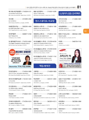 이지번역통역 ..................... (949)677-0740 정혜란댄스스튜디오 ......... (714)914-1456 동방CCTV&ALARM ......... (800)344-2580