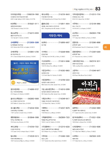 종합지붕회사 ..................... (818)846-5988 가족플러튼택시 ................. (562)809-7323 꽃가마관광택시 ................. (714)521-5556