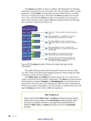 Our House procedure is shown in Figure 4-25 alongside the drawing