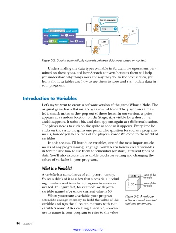 Figure 5-2: Scratch automatically converts between data types based on context .