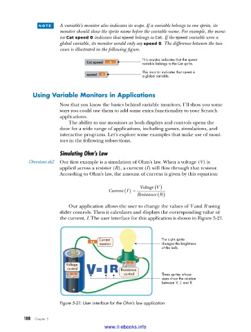 n o t e A variable’s monitor also indicates its scope. If a variable belongs to one sprite, its