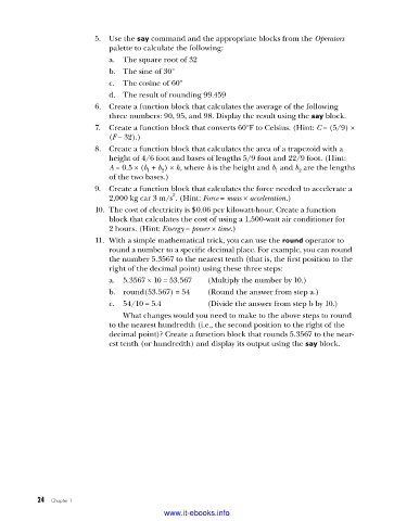 5. Use the say command and the appropriate blocks from the Operators