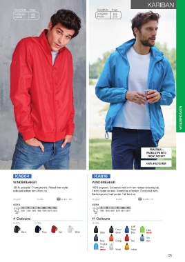 100 % polyester. 2 front pockets. Ribbed inner collar, 100% polyester. Concealed hood with tear release fastening tab.