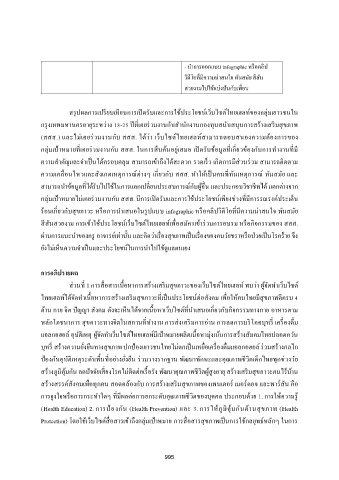 (Health Education) 2. การปองกัน (Health Prevention) และ 3. การให้ภมค้มกันด้านสขภาพ (Health