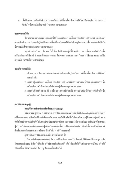 5. เพือศกษาความสัมพันธระหว่างการรแบรนด์ด้งเครองส าอางศรจันทรกับพฤตกรรม และการ