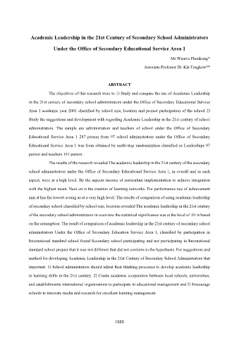 The objectives of this research were to 1) Study and compare the use of Academic Leadership