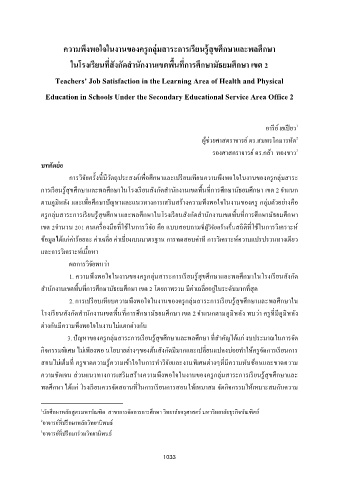 1. ความพึงพอใจในงานของครกล่มสาระการเรยนรสขศกษาและพลศกษาในโรงเรยนสังกัด
