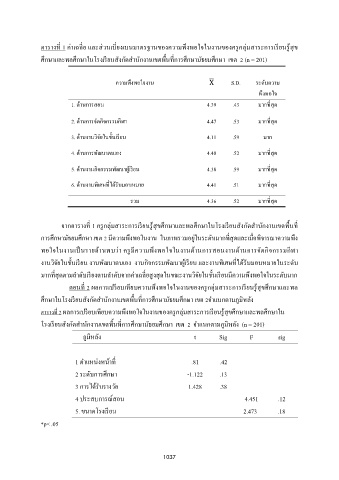 ตารางท 1 ค่าเฉลย และส่วนเบยงเบนมาตรฐานของความพึงพอใจในงานของครกล่มสาระการเรยนรสข