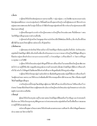 2) ผู้สอนให้นักเรยนแต่ละกล่มน าข้อมลทได้จากการศกษาค้นคว้ามาแลกเปลยนเรยนรและพิจารณา