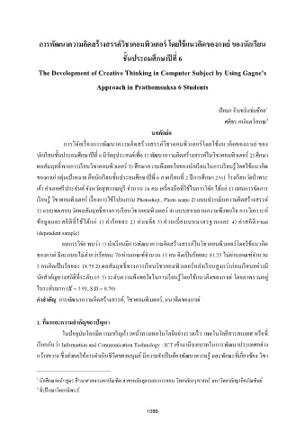 การวิจัยเรองการพัฒนาความคดสรางสรรค์วิชาคอมพิวเตอรโดยใช้แนวคดของกาเย่ ของ