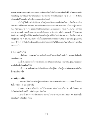 1. เพื่อศกษาความสามารถด้านความคดสรางสรรค์ โดยการเรยนรแบบก ากับตนเองของนักเรยนชั้น