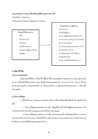 1. สถตเชงพรรณา (Descriptive Statistic) เปนการอธบายข้อมลเบ้องต้นเกียวกับกล่มตัวอย่าง