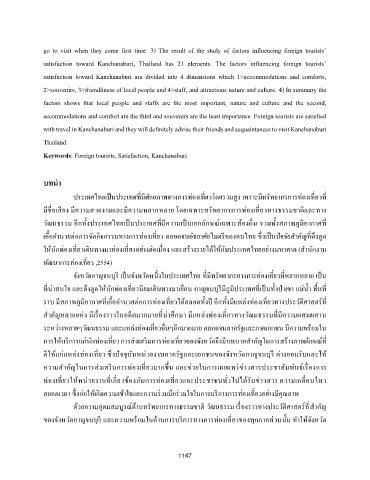 Keywords: Foreign tourists, Satisfaction, Kanchanaburi