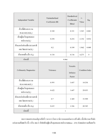 ผลการทดสอบสมมตฐานข้อท 2 จากการวิเคราะหการถดถอยดังตารางข้างต้น เมอพิจารณาปจจัย