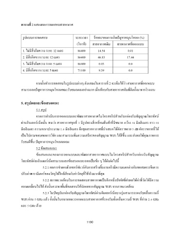 ตารางที่ 2 แสดงผลการทดสอบสายอากาศ