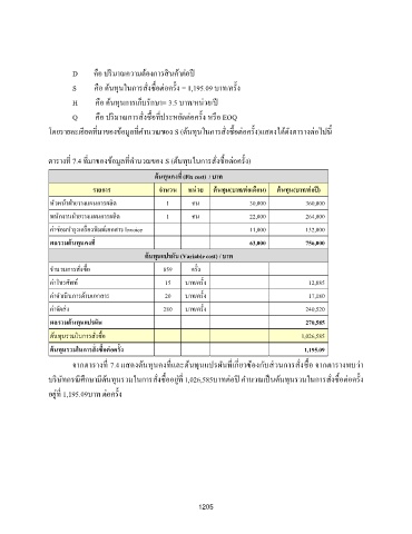 จากตารางท 7.4 แสดงต้นทนคงทและต้นทนแปรผันทเกียวข้องกับส่วนการสั่งซ้อ จากตารางพบว่า