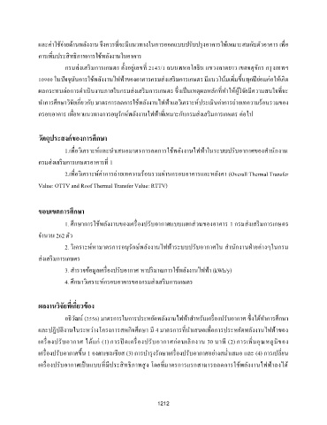 ท าการศกษาวิจัยเกียวกับ มาตรการลดการใช้พลังงานไฟฟาแลวิเคราะหประเมนค่าการถ่ายเทความรอนรวมของ