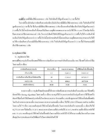 ตารางที่ 8.1 สรปเปรยบเทยบผลทได้จากการจัดเสนทางการขนส่งสนค้าแบบเดม และวิธเซฟวิ่งอัลกอรทม
