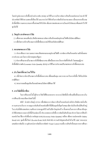 2.1 เพือหาแนวทางเพิ่มประสทธภาพของการจัดการสนค้าคงคลังอปกรณไฟฟาบรษัทกรณศกษา