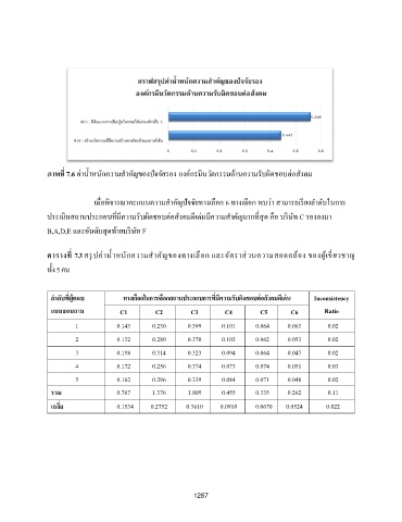 ตารางที่ 7.3 สรปค่าน ้าหนักความส าคัญของทางเลอก และอัตราส่วนความสอดคล้อง ของผู้เขยวชาญ