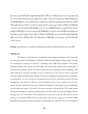 air conditioning system for the Building 8 of Dhurakij Pundit University leading to energy-savings. The study