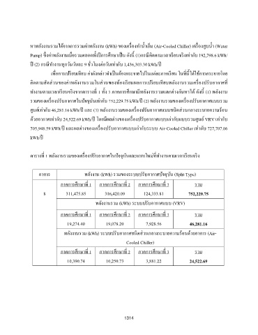 ตารางท 1 พลังงานรวมของเครองปรบอากาศในปจจบันและแบบใหม่ททํางานตามเวลาเรยนจรง