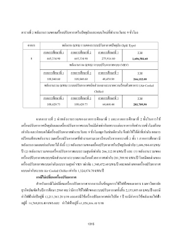 ป (2) พลังงานรวมของเครองปรบอากาศแบบรวมศนย์เท่ากับ 266,112.00 kWh/ป และ (3) พลังงานรวมของ