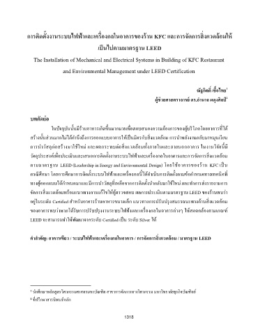 ค าสาคัญ: อาคารเขียว / ระบบไฟฟาและเครองกลในอาคาร / การจดการสงแวดลอม / มาตรฐาน LEED