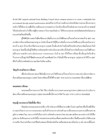 ส่งแวดล้อมตามมาตรฐาน LEED โดยการศกษาน้ได้ใช้ราน KFC สาขา LOTUS CHANDEE เปนกรณศกษา