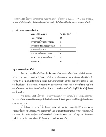 ราน KFC ในกรณศกษาได้รบการประเมนในหมวดได้ผลการประเมนสงในหมวดทตั้งตัวอาคารและ