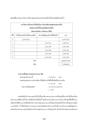 ตารางที่ 6 แสดงการวิเคราะหอัตราผลตอบแทนภายในหลังล้างไสหอหล่อเย็นหน่วยท 3