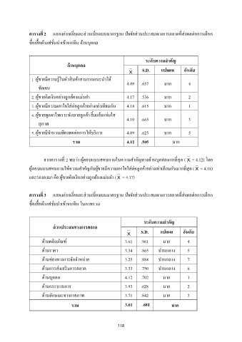 จากตารางท 2 พบว่า ผู้ตอบแบบสอบถามในความส าคัญทางด้านบคคลมากทสด ( X = 4.12) โดย