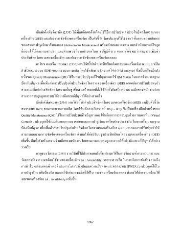 บัลลังค์ คดหมาย (2556) งานวิจัยน้น าค่าประสทธผลโดยรวมของเครองจักร(OEE) มาเปนตัวช้วัด