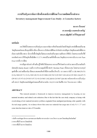 การปรบปรุงการจัดการสนคาคงคลังกรณีศกษาโรงงานผลิตเครองสาอาง
